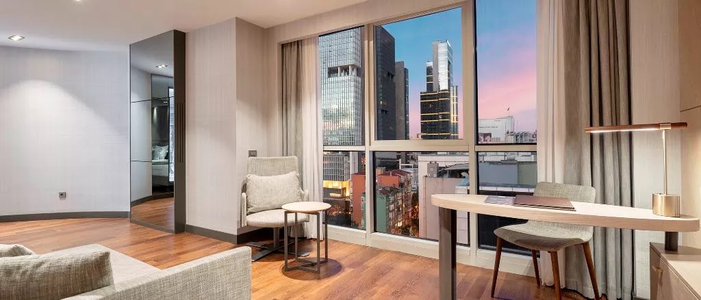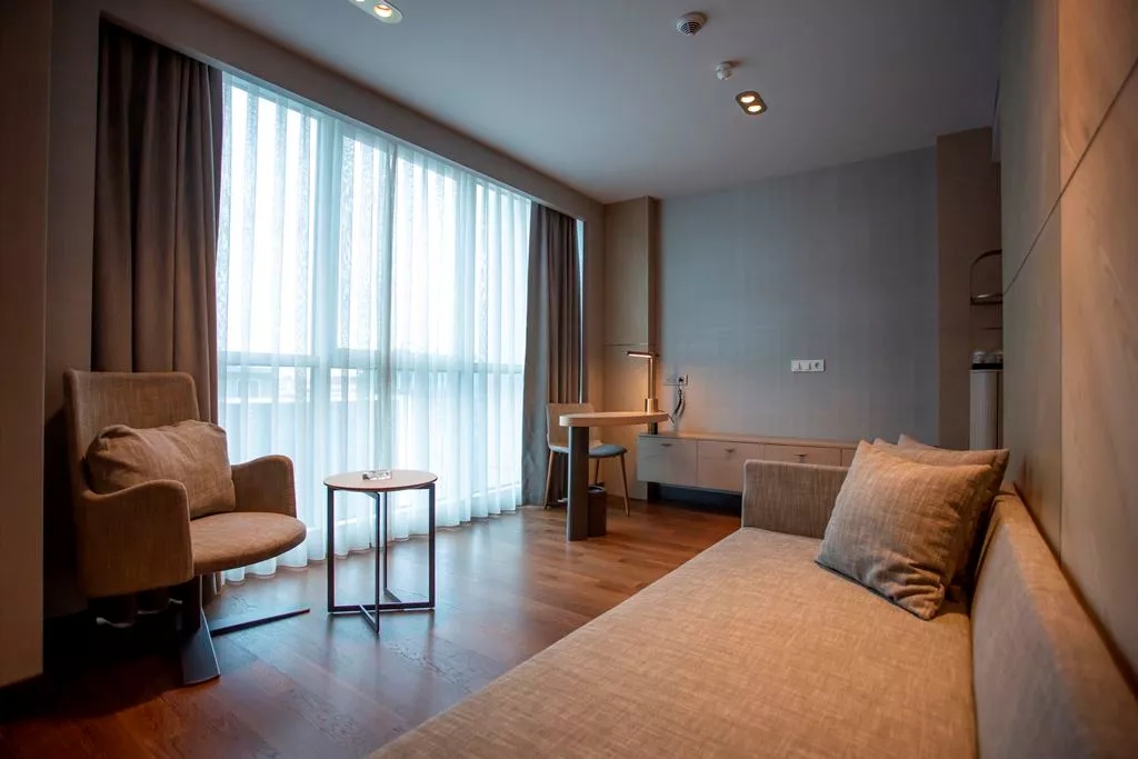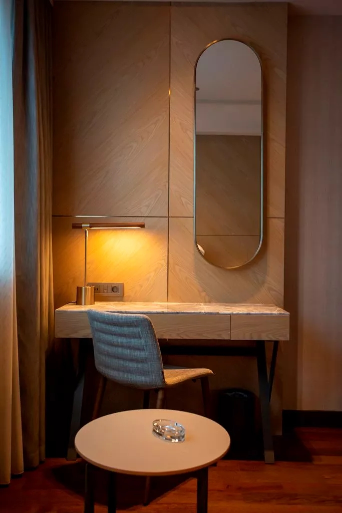 Modern çizgiler ve pastel renklerle iş ve aile konforu düşünülerek döşenmiş, şehrin yoğunluğunu size unutturacak odalarımızda sizlere kişiselleştirilmiş bir konaklama deneyimi sunuyoruz!