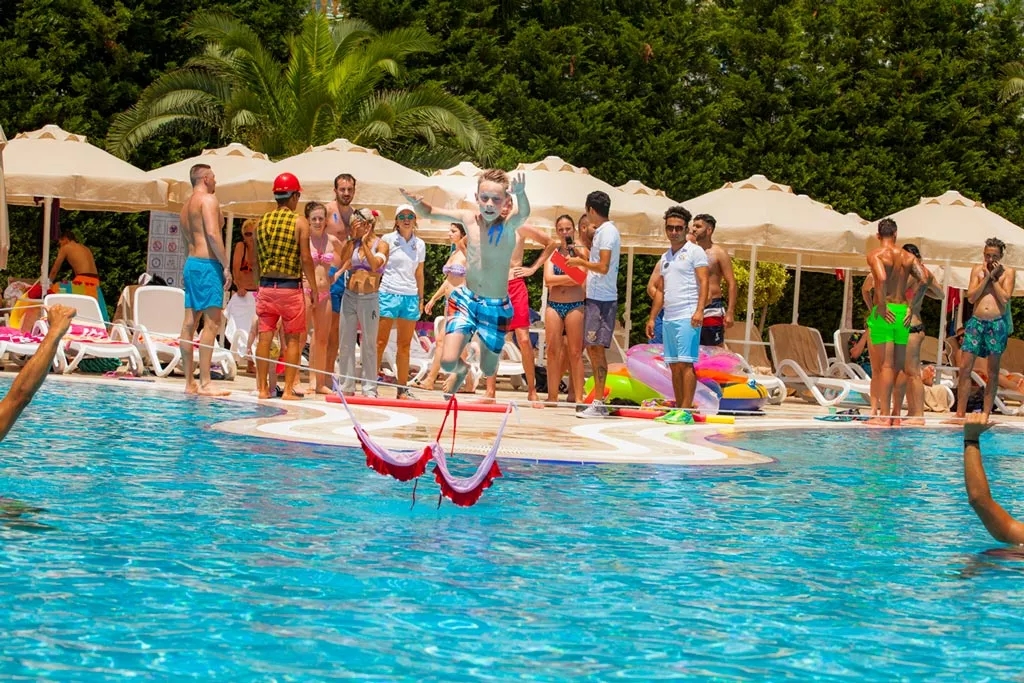Daily activities (Gymnastics, Boccia, Beach volley, Darts, Air rifle, Step aerobics, Water gymnastics, Water polo, Pool games, Mini football, Tennis, Table tennis, Billiards, Squash, Mini golf) and night shows dancing shows) entertainments are waiting for you. You can benefit of the motorized and non-motorized water sports offered with extra charge, on our beach.