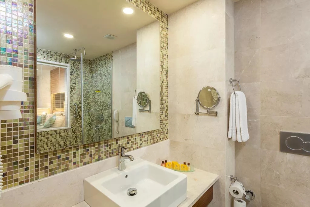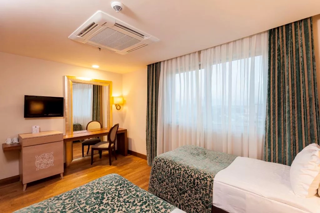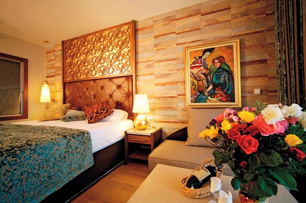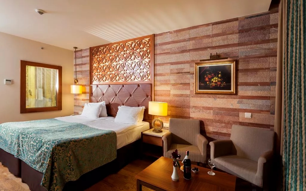 ВОЗМОЖНО РАЗМЕЩЕНИЕ МАКСИМУМ 2 ВЗРОСЛЫХ + 2 ДЕТЕЙ, 3 ВЗРОСЛЫХ + 1 РЕБЕНОК ИЛИ 4 ВЗРОСЛЫХ.Наши двухуровневые номера состоят из двух этажей, и на верхний этаж можно подняться по деревянной лестнице посередине. На нижнем этаже установлены 2 односпальные кровати, а наверху - круглая двуспальная кровать. На первом этаже ванна / туалет / джакузи, наверху туалет / душ. Фен в номере, зеркало для макияжа, халат, мини-бар, телефон, ЖК-телевизор со спутниковыми каналами (2 шт. На нижнем и верхнем этажах), музыкальный канал, сейф, центрально регулируемый кондиционер, гостиная, ламинат, балкон, чай и кофе с электрическим чайником. предлагается вашему беспроводному интернет-сервису.