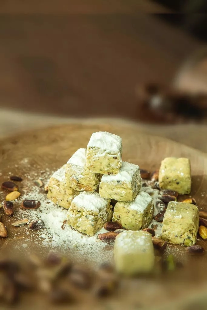 Doppelt gerösteter Lokum: Diese Sorte gibt es gefüllt mit Haselnüssen, Pistazien oder Walnüssen, doppelt geröstet.
