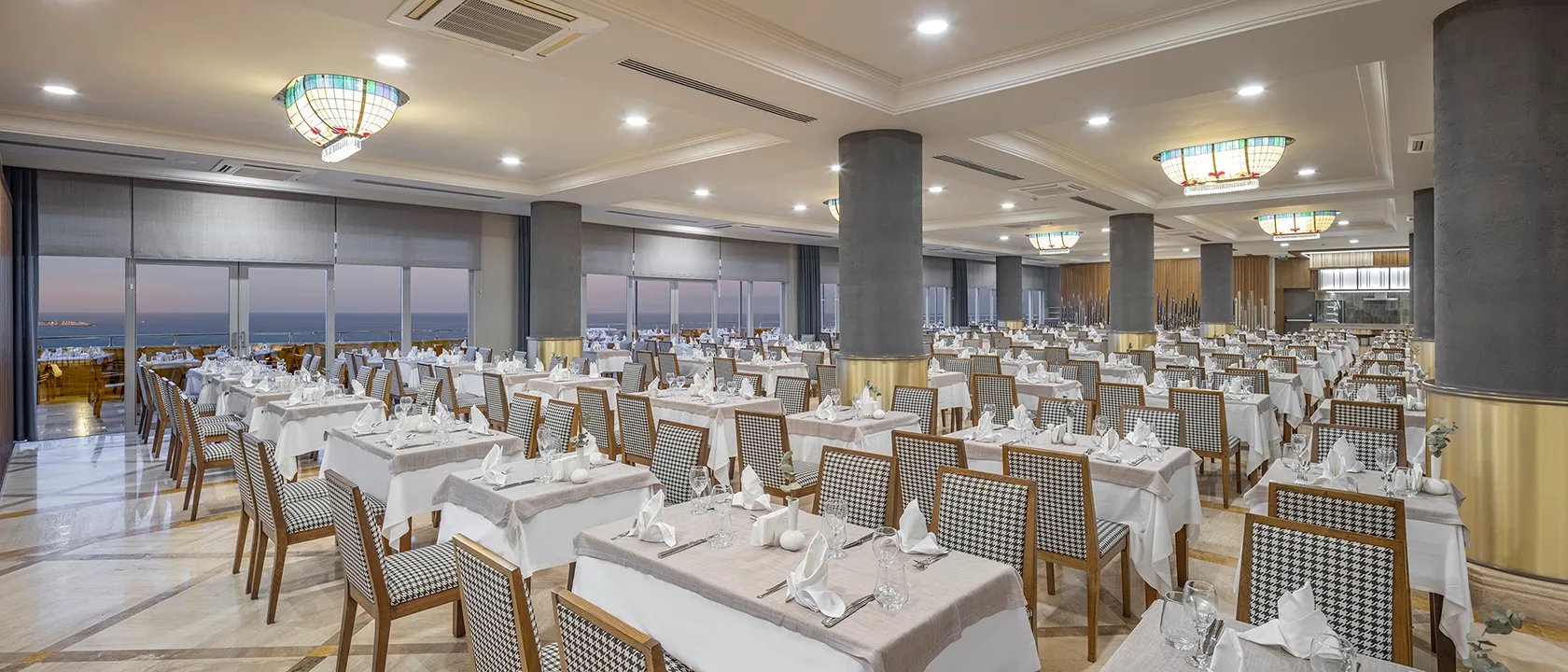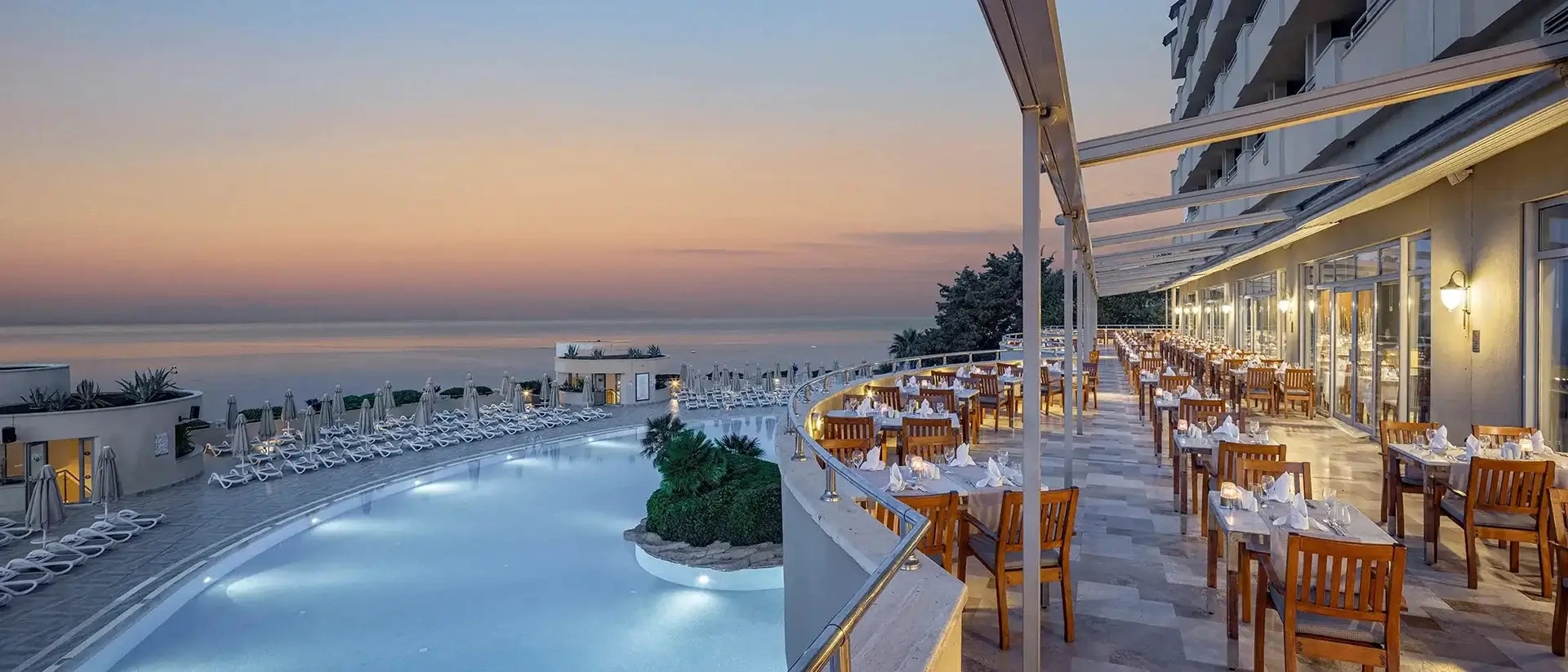 Our Alacarte Restaurant, located on the 9th floor of our hotel, brings you selected dishes from the world cuisines to your table, accompanied by the magnificent side and Mediterranean panorama, and a taste journey that exceeds the limits is waiting for you. Your holiday will be different with the stylish presentations of our master chefs who reinterpret the elite dishes of Turkish, Fish, Eastern and Western cuisines which you can make free reservation once during your stay.